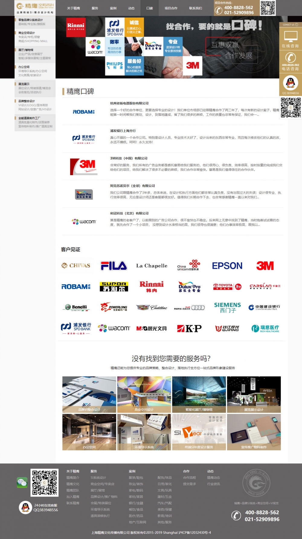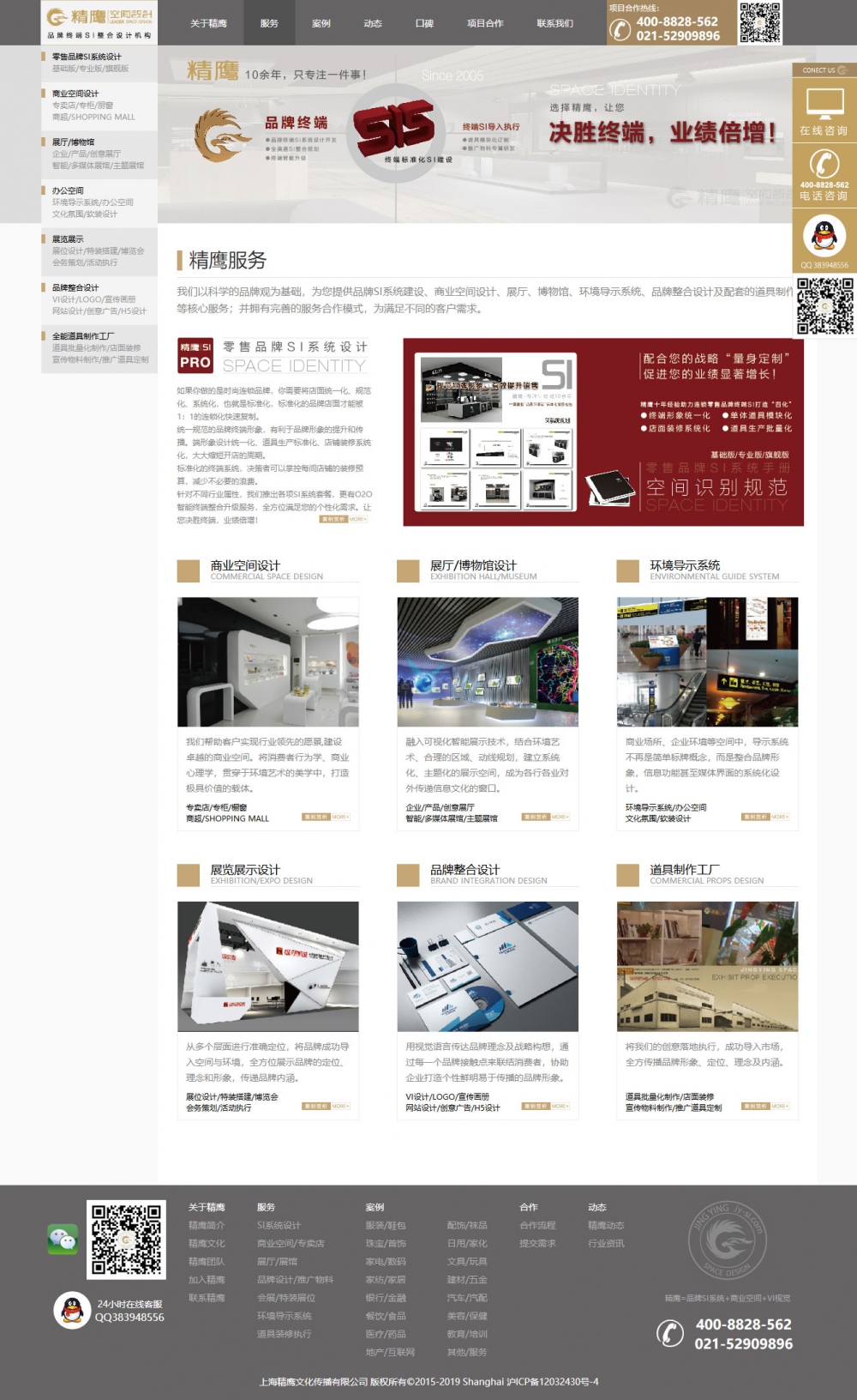 "精鹰空间设计"隶属于精领品牌管理(上海)有限公司,专注于品牌SI系统建设。我们将国际先进的品牌创新理念与国内本土企业的实际需要相结合, 利用行业顶尖创新技术,打造独特的品牌设计与客户体验,助力企业建立长期系统性的创新能力和品牌竞争优势。我们的主要服务有:品牌终端识别(SI) 系统设计、商业空间、智能化展厅/博物馆、环境导示系统、展览展示、品牌形象整合设计等。