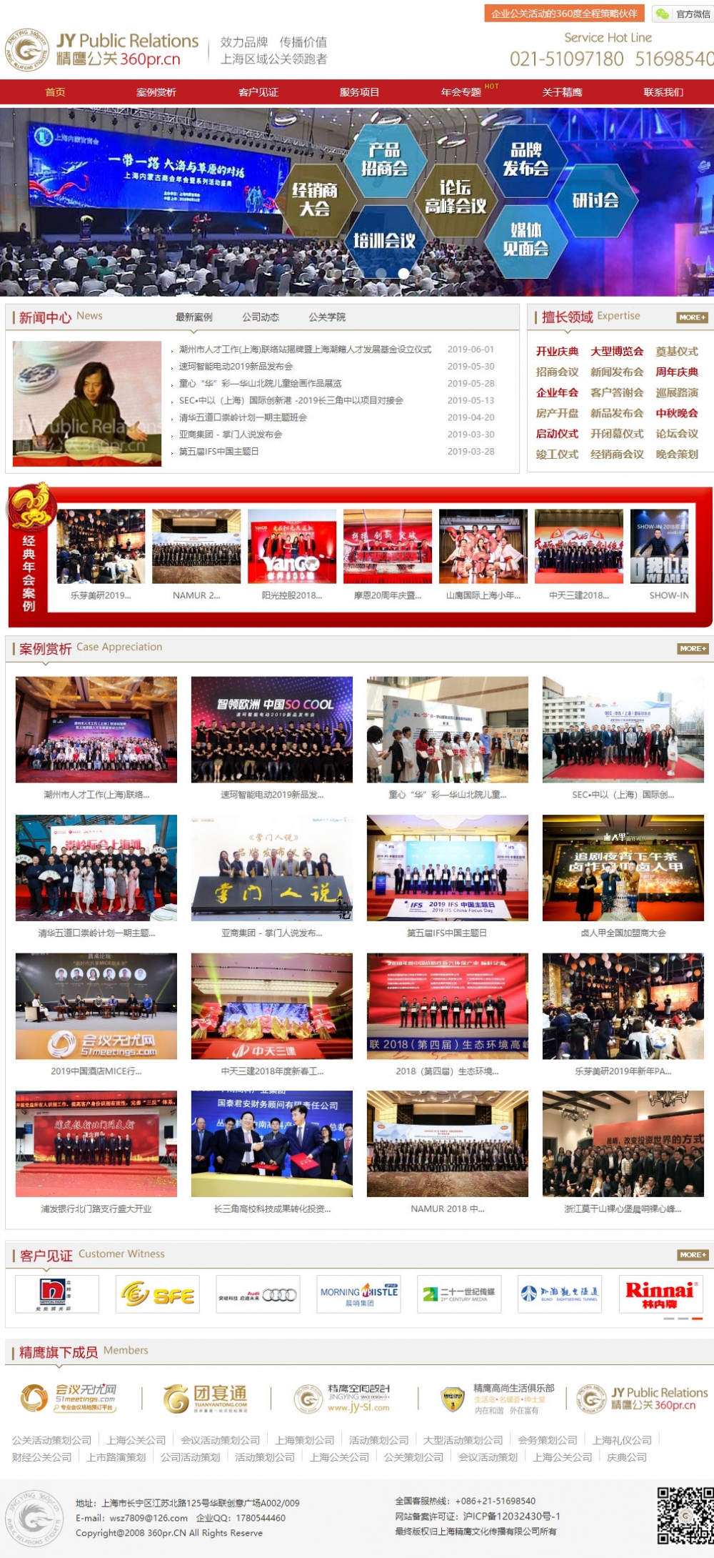 精鹰公关.上海 (www.360pr.cn)成立于2008年,经过多年的迅速发展,成为上海地区会务/公关行业中实力较强的服务机构之一,由一批具有全维度公关整合工作经验的年轻团队组成。为企业提供品牌传播、线下公关活动、会议场地预定、策划执行、商业设计、演绎演出经纪、舞美设计搭建、影视制作、数字营销、媒体策略、财经公关等服务,面向国内外客户提供“策略思考+创意策划+最佳执行”360度全方位专业公共关系服务,帮助客户创造看到(INSIGHT)、想到(IDEA)、做到 (IMPLEMENTATION)、达到(IMPACT)的价值,帮助客户提高知名度、增强美誉度、 维护忠诚度,实现企业业务的持续和稳定增长。 我们的客户涵盖汽车、金融、消费品、生物制药、IT高科技行业、房地产汽车、服装、游戏等各行各业,我们针对不同的客户度身定做适合的公关传播策略,基于对专业的尊重与信任,我们与众多客户保持着长期稳定的战略伙伴关系,共同创造,分享成功。效力品牌,传播价值,是精鹰始终如一的核心目标。